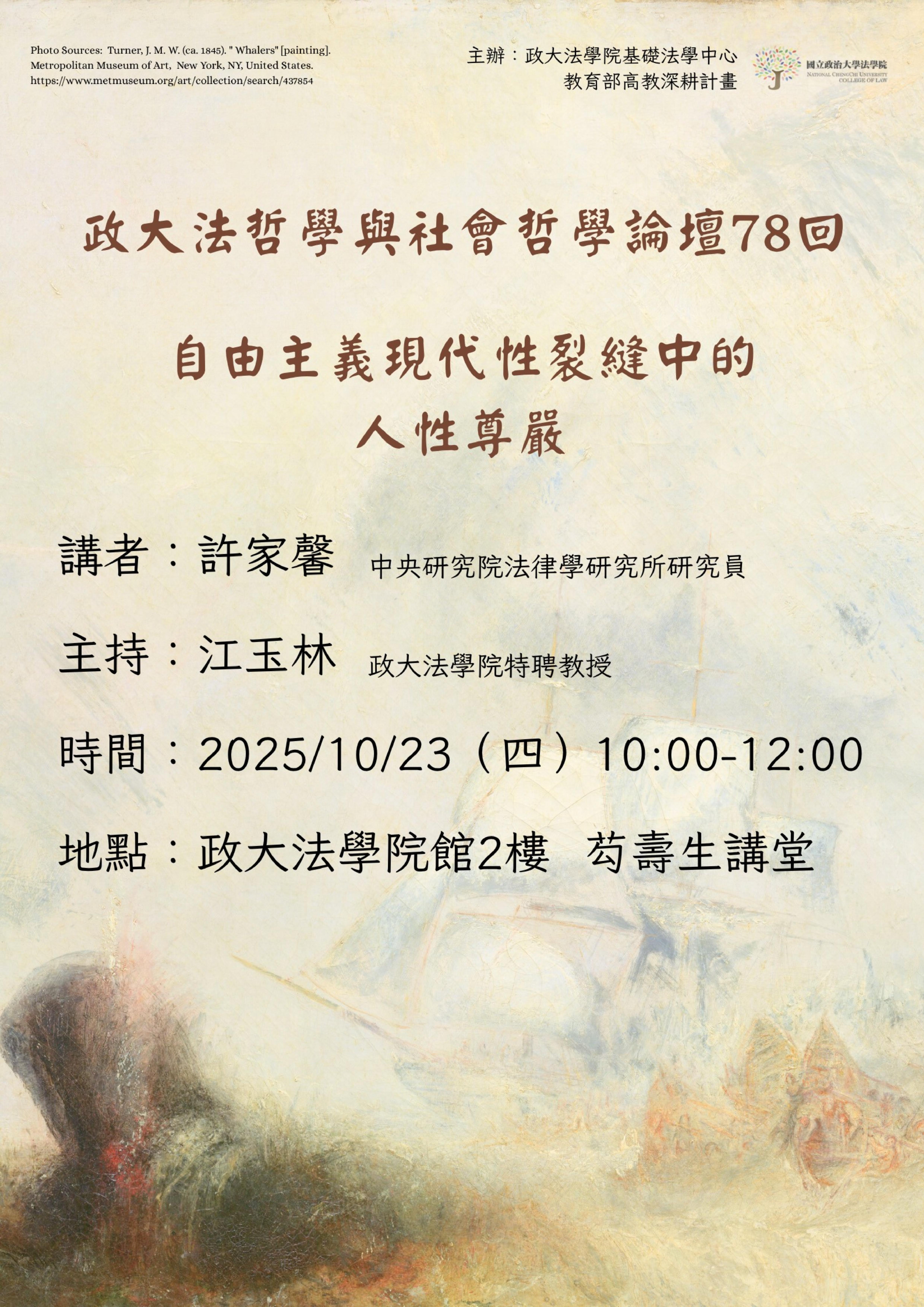 114.10.23(四)政大法哲學與社會哲學論壇 78 回-自由主義現代性裂縫中的人性尊嚴
